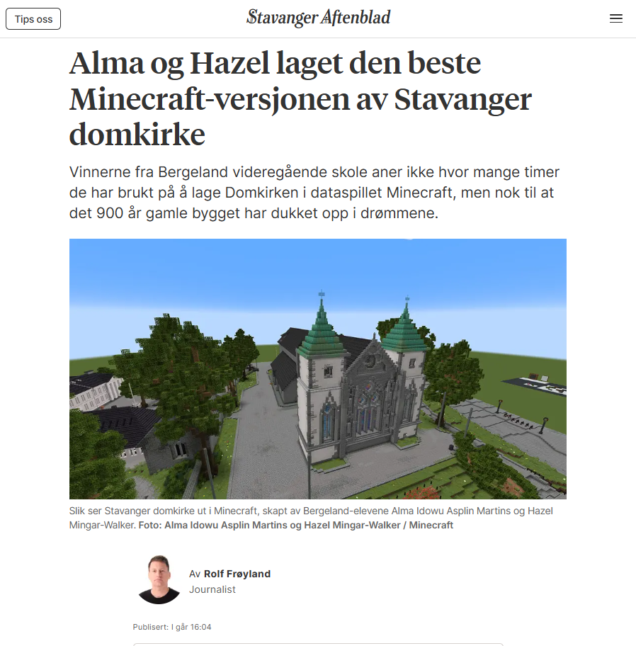 Omslag: Ved å plassere middelalderens storverk inn i en moderne, virtuell kontekst, utfordrer prosjektet forestillinger om hva kulturarvformidling kan være. Det gir ungdom en aktiv rolle i å tolke og bygge videre på fortiden – og inviterer publikum inn i et kulturelt rom der pikselstein møter kleberstein. Dette omslaget i metode og uttrykk speiler nettopp den forandringen Stavanger 2025 ønsker å fremme – der kultur ikke bare bevares, men utvikles sammen med nye generasjoner.